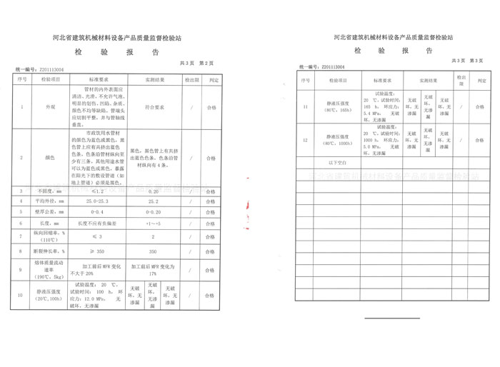 給水用聚乙烯(PE)管材檢驗(yàn)報(bào)告